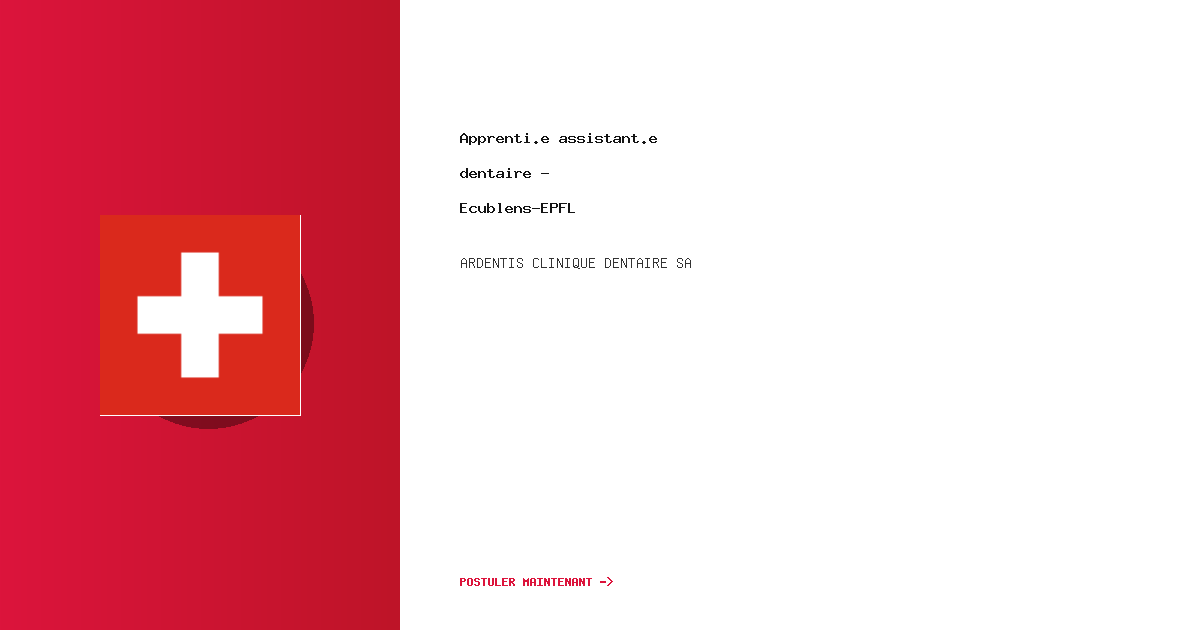 Rejoignez Ardentis, une clinique dentaire innovante à Vevey.TâchesAssurer des soins dentaires de q...