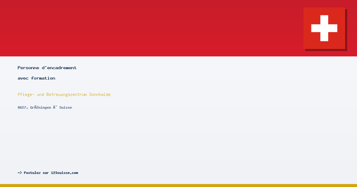 Le SONNHALDE à Grüningen est un centre de soins innovant. Nous offrons un environnement stimulant et des avantages attractifs.TâchesAccompagner des personnes avec des handicaps dans leur travail.Gérer des produits industriels et assurer la qualité de production.Collaborer étroitement avec le responsable de l'atelier.CompétencesFormation technique requise, expérience en industrie souhaitée.Compétences sociales développées pour travailler en équipe.Capacité à garder son calme dans des situations délicates.LeSONNHALDE à Grüningenest un centre innovant de soins et d'encadrement spécialisé en psychiatrie dans les soins de longue durée. Nous faisons partie de Peter di Gallo Unternehmungen AG et proposons environ 300 lits répartis sur 14 unités, encadrés par 320 collaborateurs.Pour notre atelier protégé, nous recherchons un/unePersonne d'encadrement (100 %, h/f)avec formation technique de baseVotre nouveau défiAimeriez-vous accompagner et soutenir au quotidien des personnes en situation de handicap ? Dans notre atelier, nous proposons des emplois porteurs de sens et recherchons unepersonnalité engagée en tant que personne d'encadrement.Vos tâches :Responsable produit pour des ensembles industrielsTravail autonome avec des résidents psychiquement affectés en alternanceParticipation active lors d'événements spéciauxExécution fiable des tâches relevant de votre domaine de responsabilité (technique et organisationnelle)Encadrement, soutien et direction des résidentsParticipation aux commandes industriellesContrôle des normes de qualité pendant et à la fin de la productionCollaboration étroite avec le chef d'atelier, y compris rapports réguliersPlanification des commandes de production et des délais en tenant compte des capacités individuelles et des performances des résidentsVotre profil :Formation professionnelle achevée dans le domaine technique (poly-mécanicien ou métiers similaires).Expérience professionnelle dans l'industrieJoie de travailler en équipe ainsi qu'autonomie dans le travailCompétences sociales prononcéesPersonne résistante, stable et capable de recevoir des critiques, vous gardez votre calme dans des situations délicatesBonnes connaissances en allemandInitiative personnelle ainsi qu'intérêt pour la collaboration interdisciplinaire sont des conditions de baseNous offronsCadeau pour jubilé de service tous les 5 ans – car la fidélité compte pour nousPrévoyance professionnelle propre avec participation patronale surobligatoire (60 %)Diverses réductions sur les caisses maladie (en collectif)Places de parking gratuites, offre généreuse en restauration & de nombreux autres avantagesTâches variées et défis passionnantsUne équipe motivée et collégialeCette position vous intéresse-t-elle et habitez-vous dans la région de Grüningen ?Alors nous nous réjouissons de recevoir votre candidature complète et convaincante sous forme électronique via notre outil de candidature.ContactSilvia StricklerResponsable RHCentre de soins et d'encadrement SonnhaldeTéléphone :+41 44 936 62 53
