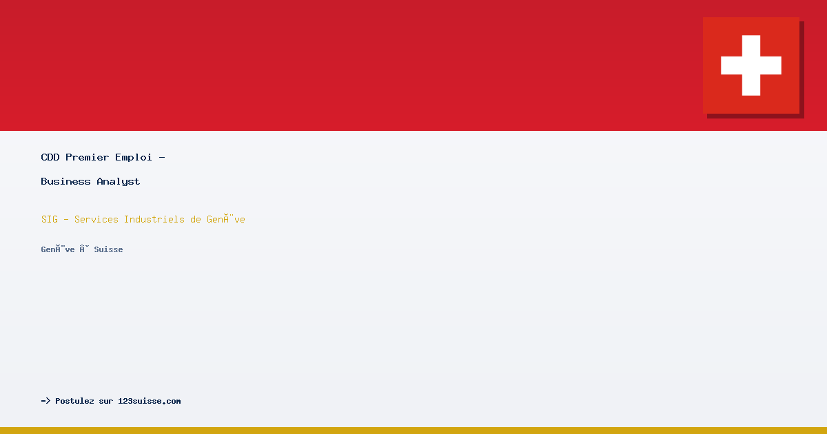 Nous allons réaliser ensembleDans le cadre du programme PEP – Premier Emploi, nous offrons à un·e jeune diplômé·e l’opportunité de rejoindre notre entreprise, acteur majeur du secteur de l’énergie, en tant qu’Analyste Métier (Business Analyst).Ce poste constitue une première expérience professionnelle enrichissante au sein d’un environnement technologique exigeant, où la qualité, la fiabilité et la performance des solutions informatiques sont essentielles au bon fonctionnement de nos activités et à la transition énergétique.Votre énergie au service d’une Genève durableAu sein de la Digital Factory, nos équipes conçoivent et développent des solutions numériques pour la transition énergétique et les services aux clients et partenaires. En tant que Business Analyst, vous contribuez activement à la compréhension, la formalisation et la validation des besoins utilisateurs.À ce titre, vous serez amené·e à :Collecter et analyser les besoins utilisateurs ;Rédiger des user stories et leurs critères d’acceptation spécifiques à chaque application ;Participer à la préparation des sprints et à la priorisation avec les responsables produits (PO) ;Valider les livrables (tests, revues, démos) ;Modéliser les processus métiers, documenter les flux et maintenir la documentation et la connaissance produit ;Être un·e acteur·rice de l’amélioration continue des processus ;Collaborer étroitement avec les coordinateurs de test, les développeurs et les différentes parties prenantes afin de garantir la conformité du produit final aux besoins métiers et aux exigences de qualité.Votre personnalité et vos compétencesVous êtes une personne curieuse, méthodique et rigoureuse, dotée d’un esprit d’équipe et d’un sens aigu du détail.Vous disposez de :idéalement d'un Master en Management des systèmes d’information, Génie Logiciel ou équivalent ;Bonnes compétences en communication et en rédaction ;Capacité d’analyse et de synthèse reconnue ;Connaissances de base du cycle de développement logiciel et des méthodes agiles (un atout, mais non obligatoire) ;Première expérience en alternance ou en stage dans le domaine informatique (souhaitée, mais non exigée).Votre autonomie, votre sens des responsabilités et votre envie d’apprendre seront vos meilleurs atouts pour évoluer dans ce poste.Rejoindre notre entreprise dans le cadre du programme PEP représente une occasion unique de développer vos compétences techniques et méthodologiques, tout en contribuant à des projets d’intérêt public dans le domaine de l’énergie.Si vous êtes motivé·e par la qualité, l’innovation et le sens du service, nous vous invitons à déposer votre candidature et à prendre part à cette expérience formatrice et valorisante.* SIG accueille régulièrement des jeunes diplômé·e·s pour leur offrir une première expérience professionnelle significative dans le cadre d'un contrat déterminé d'une année. Il est entendu dans le terme "jeunes diplômé·e·s" des personnes ayant achevé leur cycle d'études dans les 18 derniers mois, en recherche d'une première expérience professionnelle en lien avec leur cursus académique.En fonction de votre diplôme, le salaire sera calculé sur la base d’un traitement annuel de référence de CHF 60'185 ou de CHF 65'185. -- brut (base 100 %) répartis sur treize salaires.Rejoindre SIG, c’est participer au changement !SIG est une entreprise publique de proximité au service de la population, des entreprises et des collectivités publiques genevoises. Elle fournit un large panel de prestations dans la distribution des énergies, de l’eau et de la valorisation des déchets. Elle s'engage, en tant que bras industriel de l'Etat de Genève, en faveur d'une transition écologique ambitieuse.SIG favorise l’équilibre entre vie personnelle et vie professionnelle par plus de flexibilité dans les horaires, les taux d’activité et les espaces de travail. Convaincue que les différences sont une force, SIG adopte une politique de recrutement visant à promouvoir la diversité et l’inclusion au sein de ses équipes.Dans les domaines où les femmes sont actuellement sous-représentées, les candidatures féminines sont privilégiées.Mise au concours n° 7962Délai de postulation27 février 2026