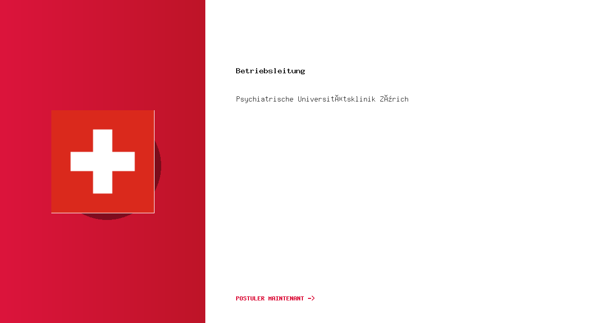 Rejoignez la Psychiatrische Universitätsklinik Zürich, un établissement de santé de renom. Une o...